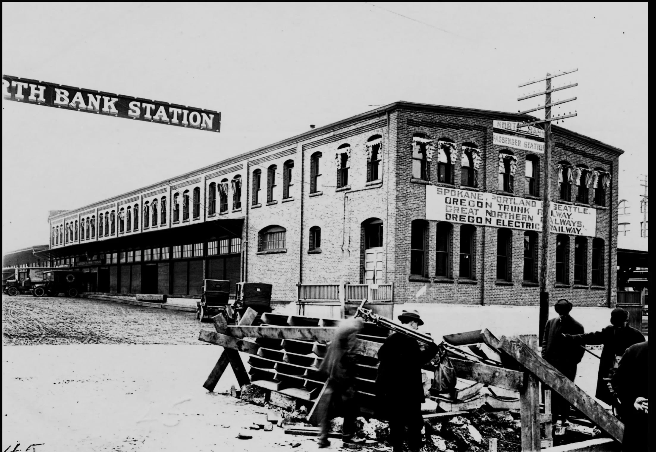 North Bank Station passenger depot. NW 11th and Hoyt in the Pearl District. Image: 1917. Image: Vintage Portland (Portland Archives)